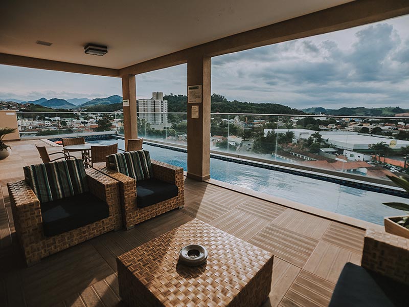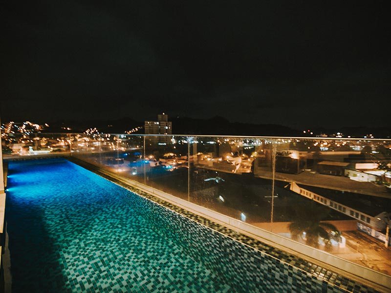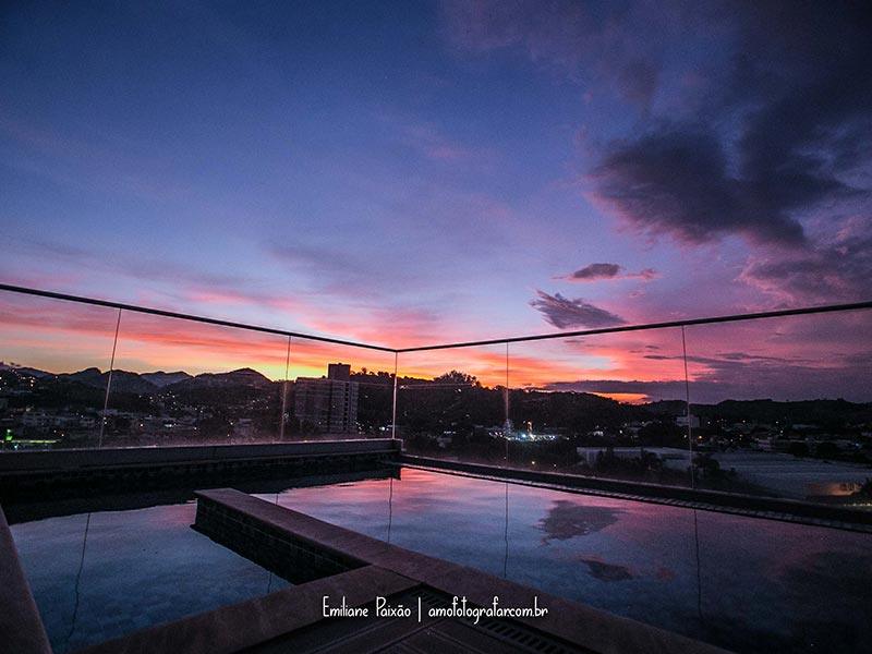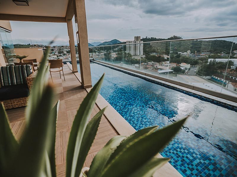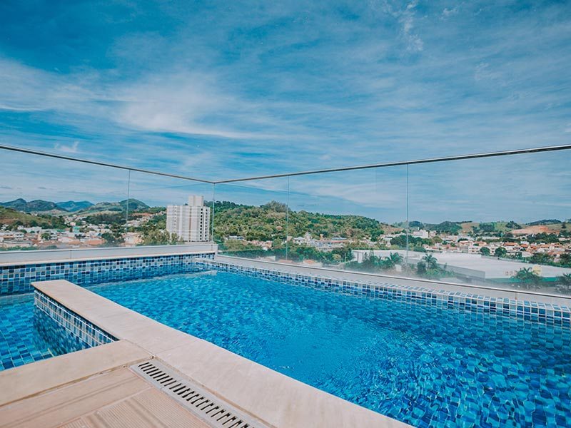 Possuímos uma ampla piscina externa de borda infinita que fica na cobertura que poderá ser uma das formas de escape para o final de um dia de muito trabalho.