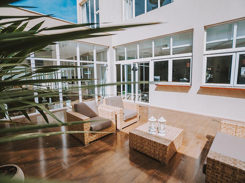 E para aqueles que querem uma opção ainda mais relaxante, o hotel conta com uma sala de massagem e poderá agendar uma hora com uma de nossas massagistas. (serviço opcional).